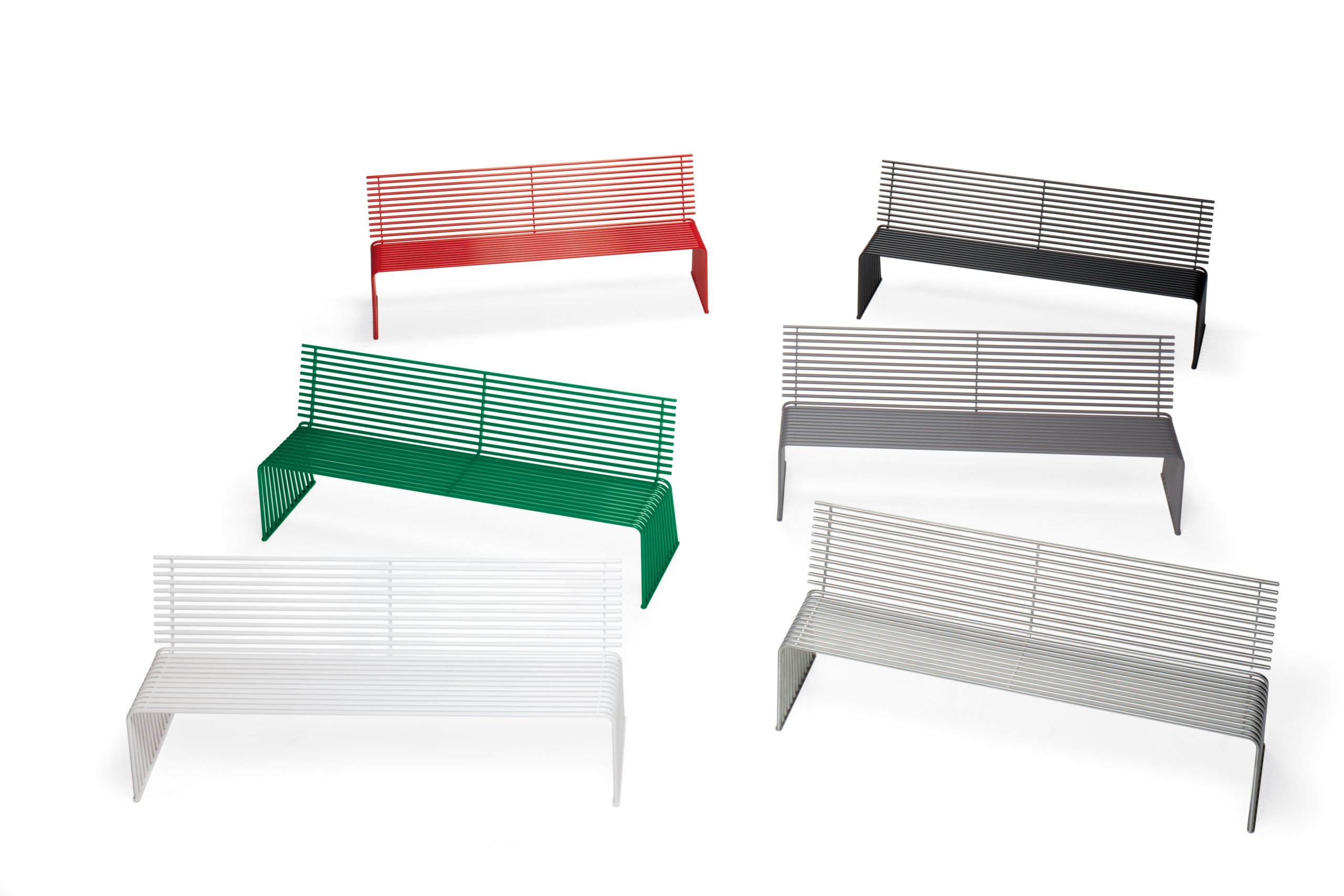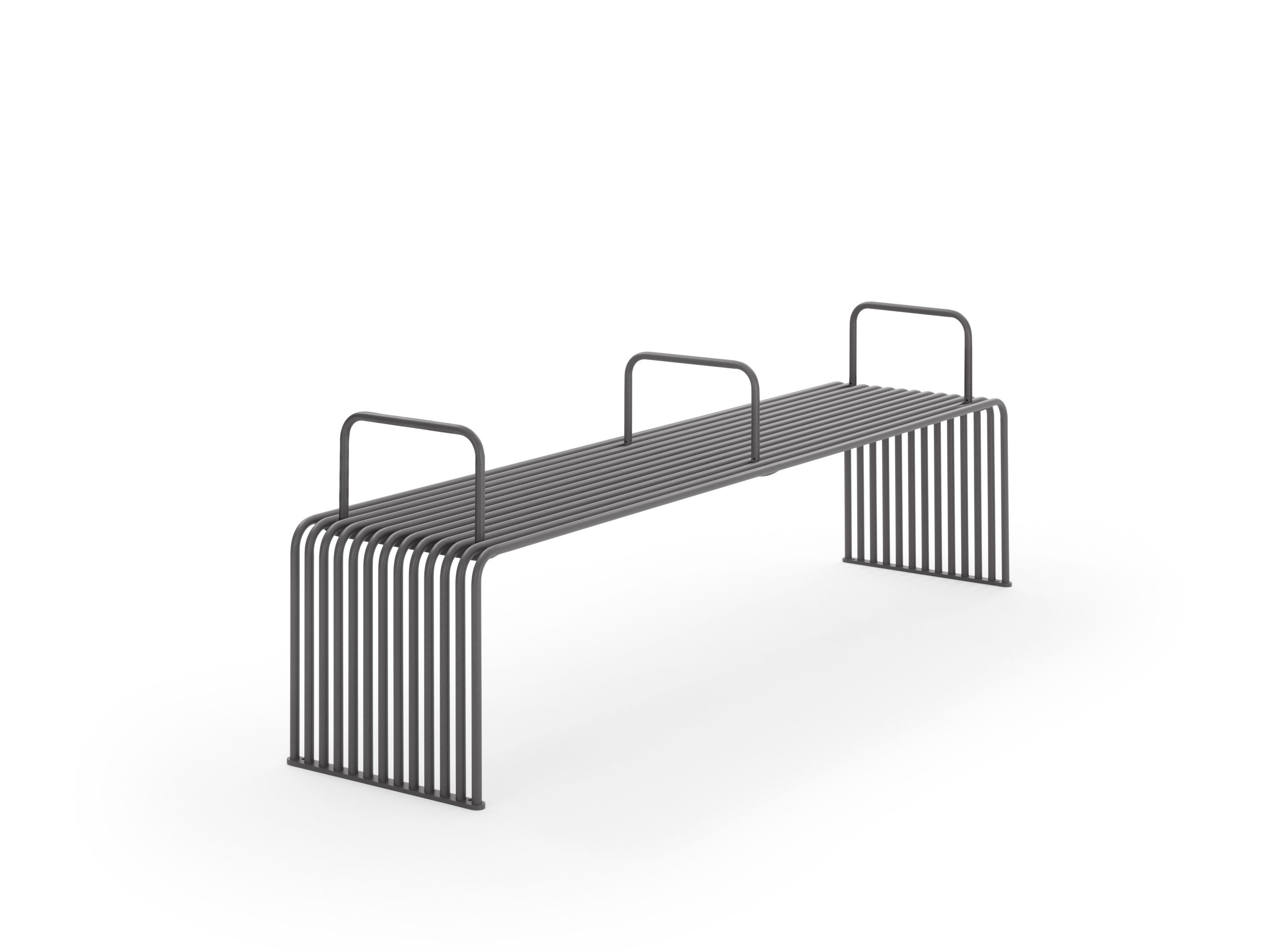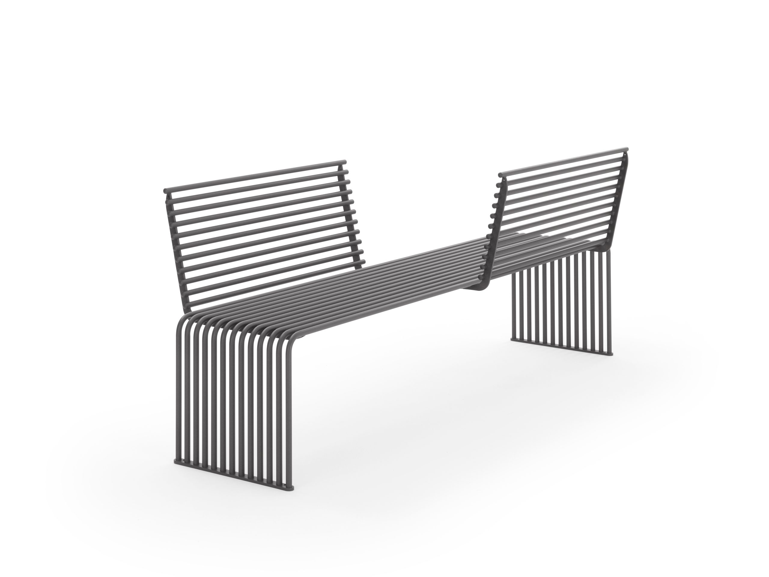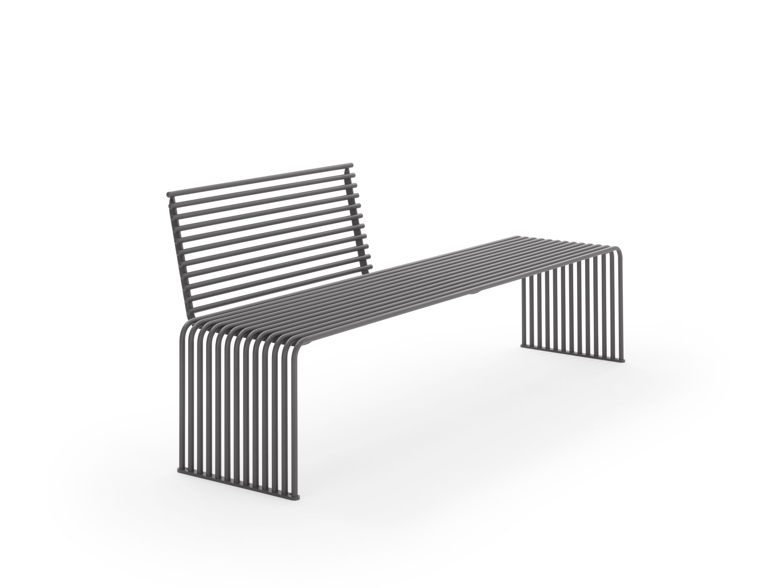 De bank is opgebouwd uit een buisvormig profiel van thermisch verzinkt staal en afgewerkt met een matte poedercoating (polyester). Dit zorgt voor een robuuste, onderhoudsvriendelijke afwerking die geschikt is voor buitengebruik.